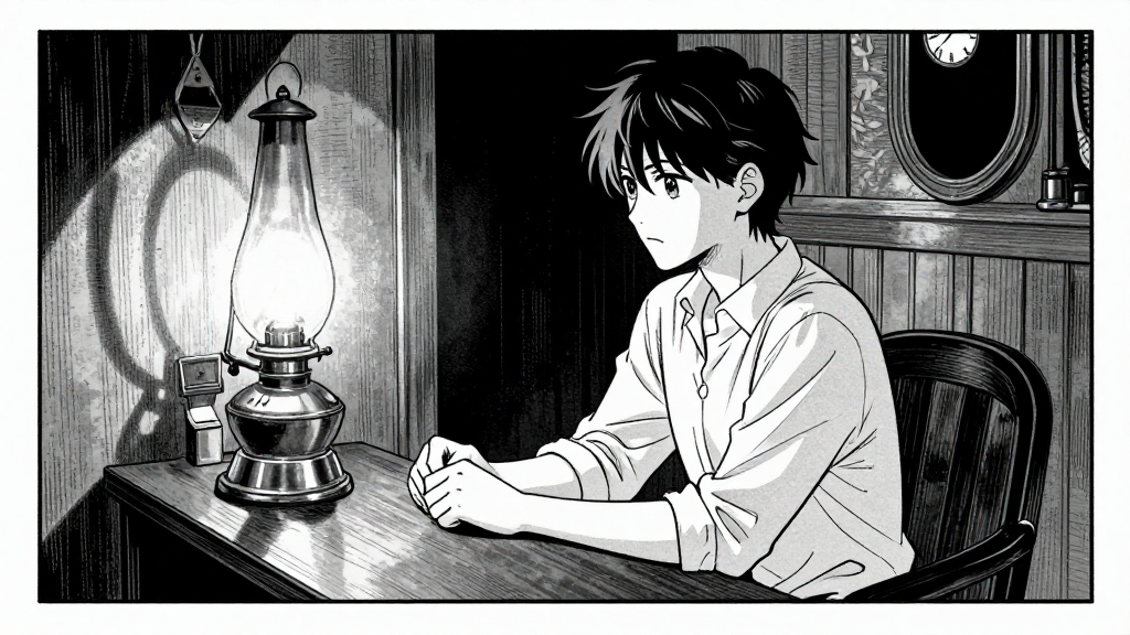 Rose sits at the brass register, gas lamps casting long shadows. The watch hangs behind her.
