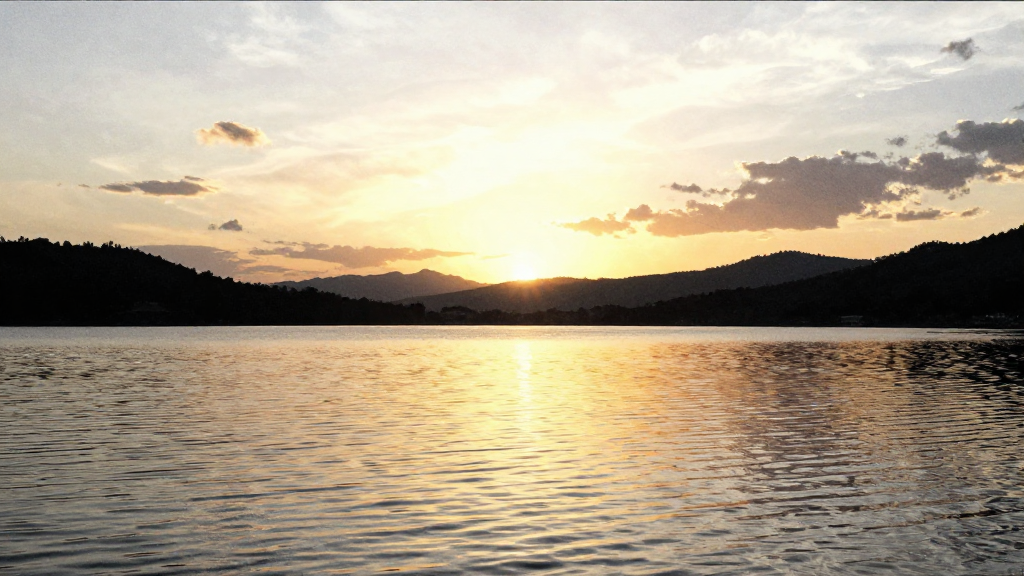 Sunset over Roopkund Lake, obsidian surface reflecting the sky.