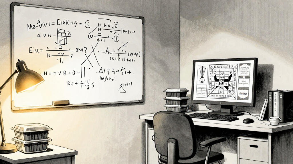 Maya's cluttered apartment, takeout containers, whiteboard covered in equations, Liubo game on a monitor glowing with success.