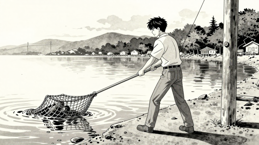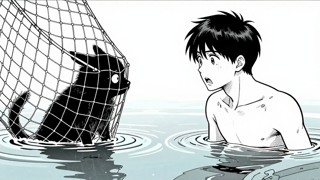 Dawn breaks over The Gray Harbor. Erik hauls his net, revealing a strange figure tangled in the water.