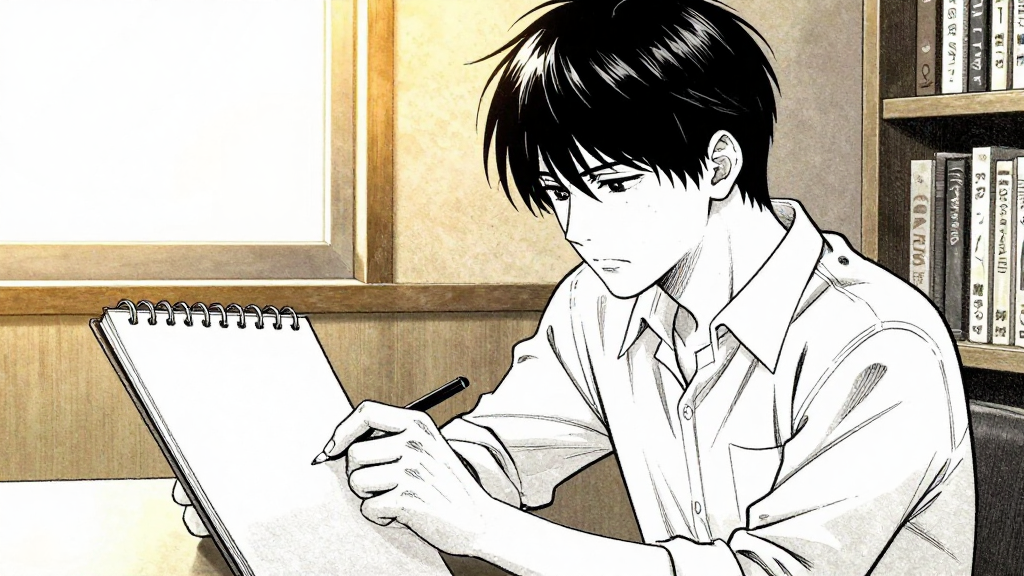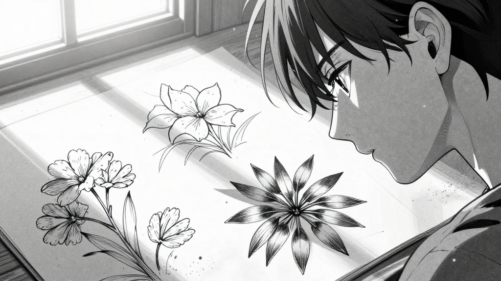 Joseph stands in his cluttered studio, surrounded by botanical sketches and scattered tools.