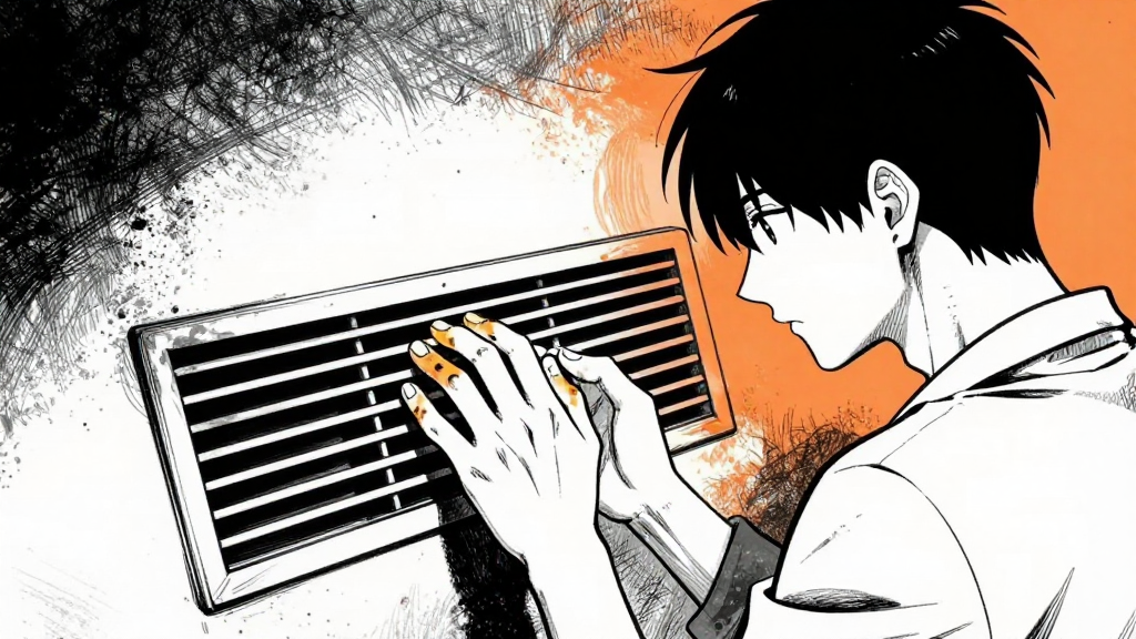 Maya films the ventilation shafts as orange glow flickers with rhythmic breathing sounds.