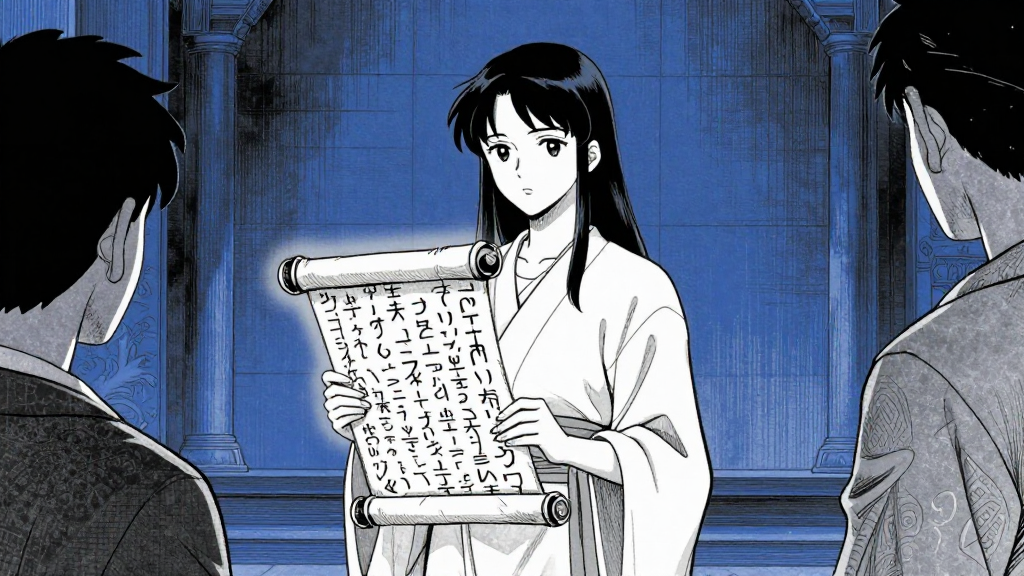 The geometric chamber of The Steward’s Court, equations shifting on walls and floor.