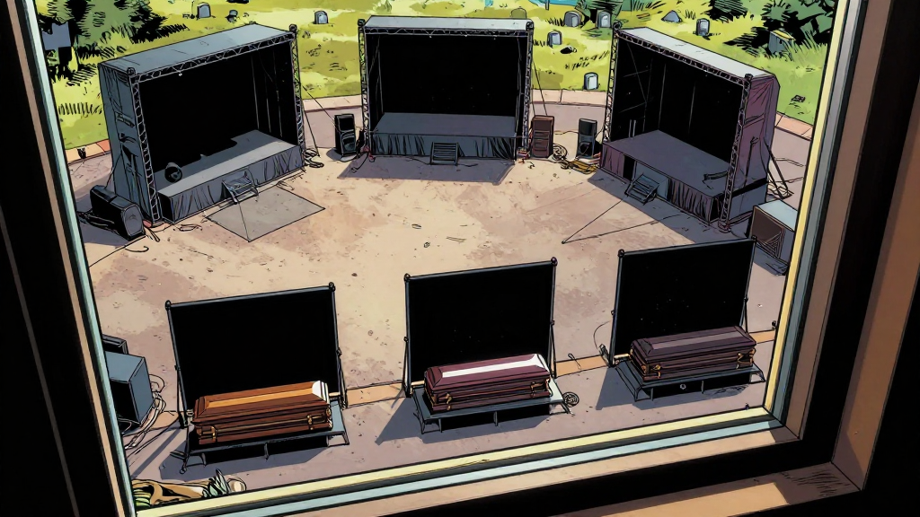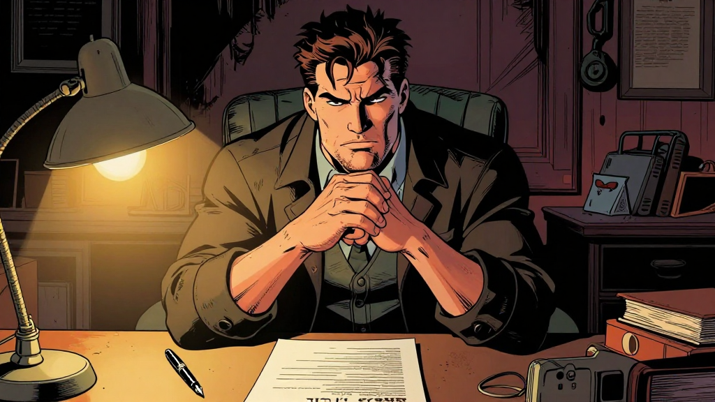 Sterling's mahogany office, top floor overlooking Titan Studios lot. Large windows frame the empire below—soundstages arranged like monuments. Rich wood paneling, leather chairs, power embodied in architecture.