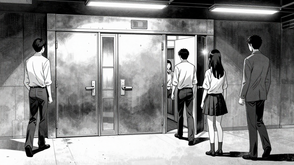 Steel doors close behind Sarah, Daniel, and Elizabeth as they enter the restricted archives.