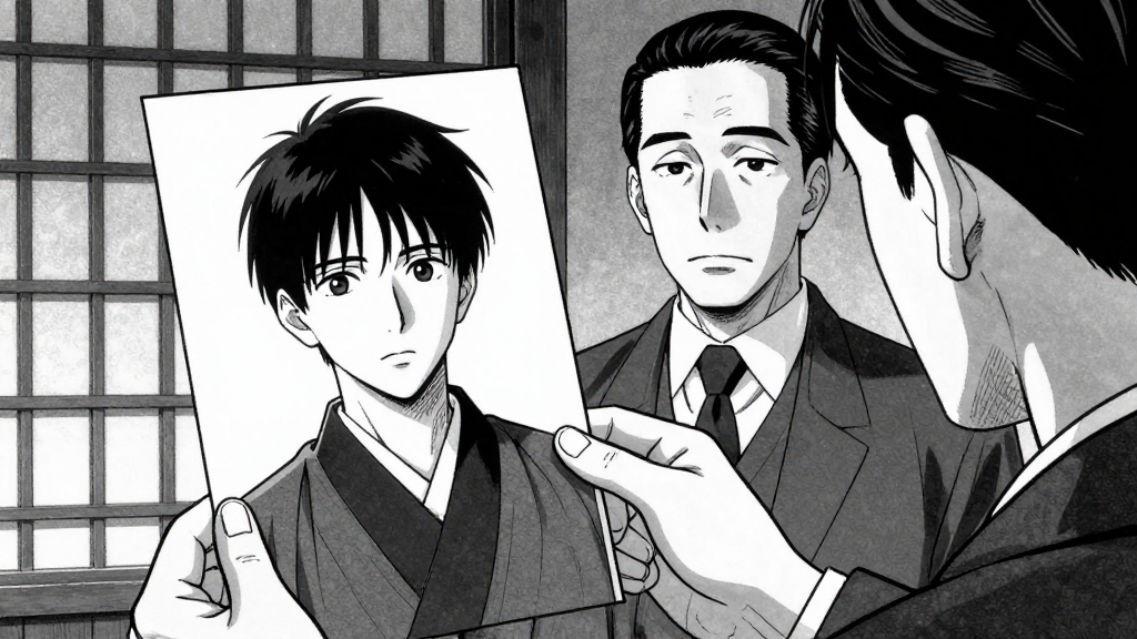 Kenjiro presents the photograph of Okubo's assassination to Minister Okubo.
