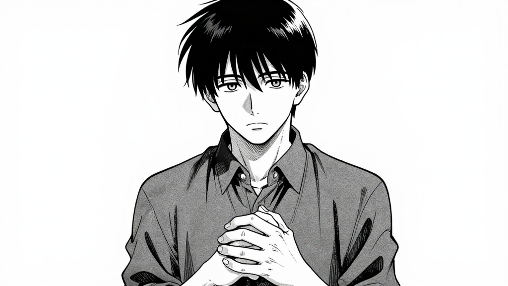 Kenjiro stands at the koi pond, realizing the truth of his dilemma.