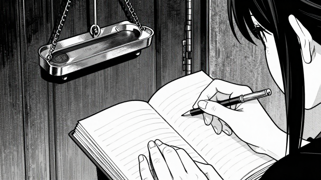 Rivka stands in the dim lending room, trembling as she stares at the ledger.